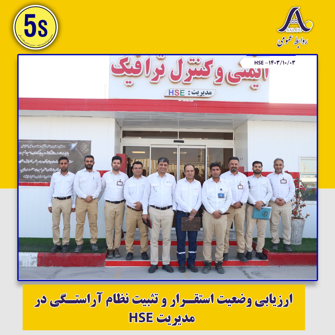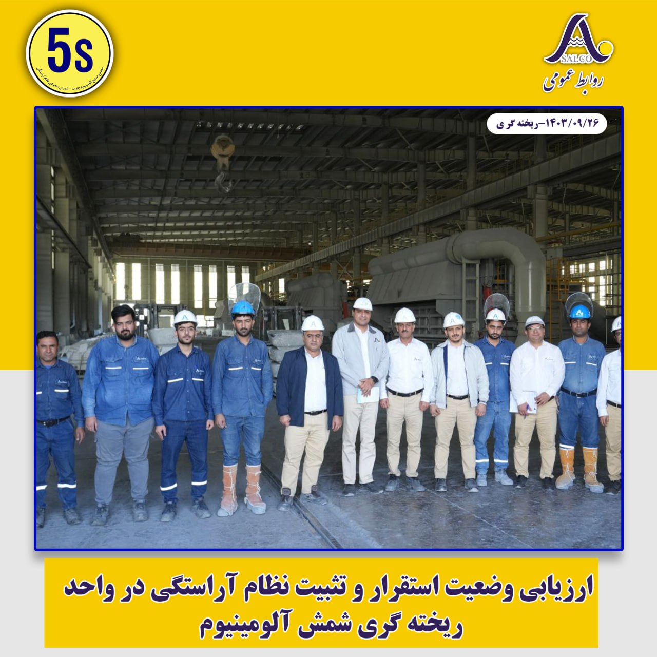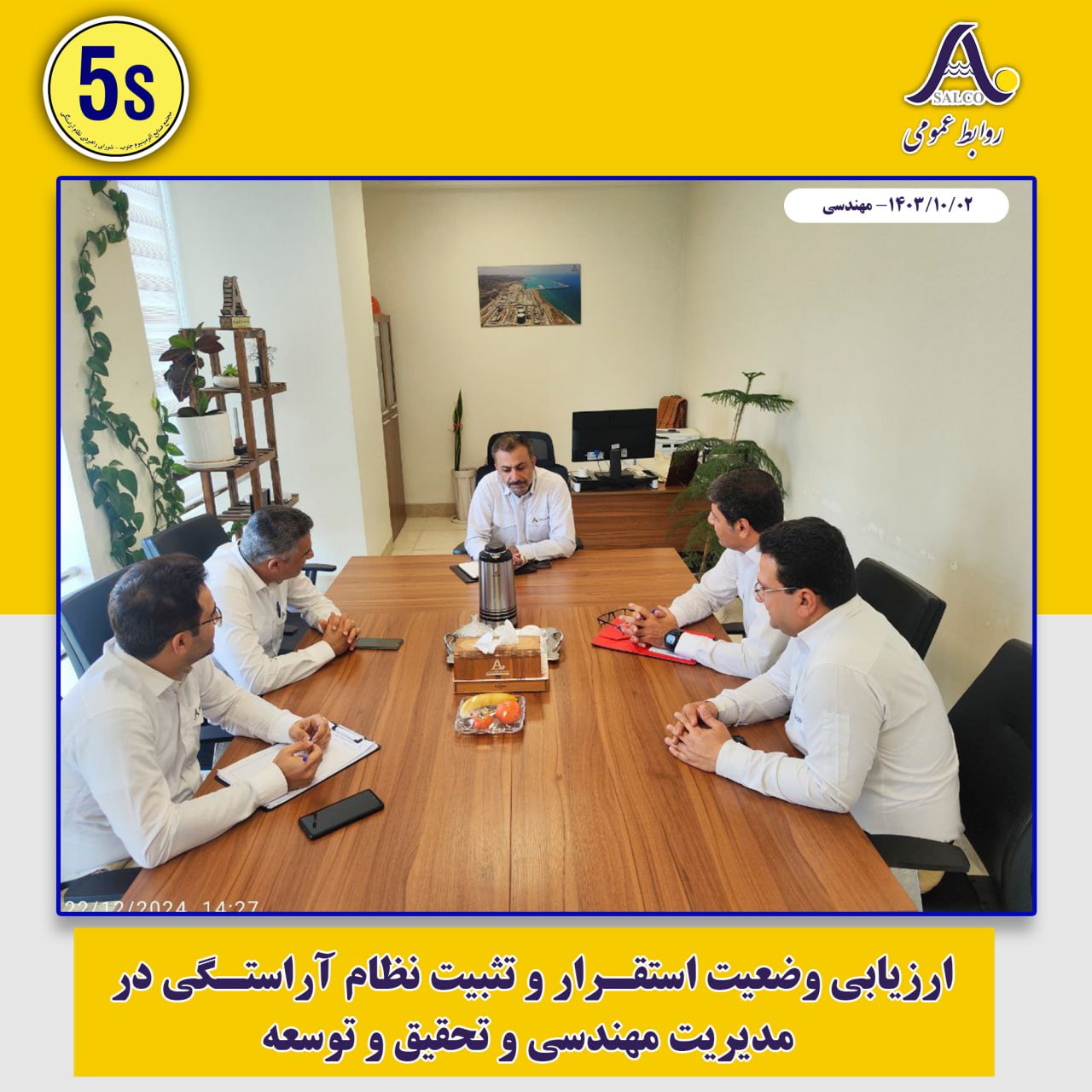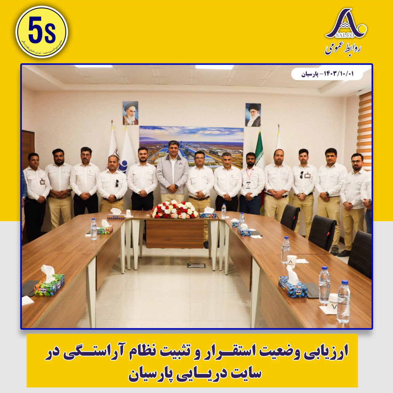 در راستای استقرار بهینه و تثبیت نظام آراستگی در واحدهای مختلف شرکت، دبیرخانه 5s با تنظیم برنامه فشرده و تشکیل تیم‌های تخصصی ممیزی، واحدهای تعمیرات، سایت پارسیان، HSE، ریخته‌گری و مهندسی و تحقیق و توسعه را مورد ارزیابی قرار داد و ضمن بررسی موارد عدم انطباق با استانداردهای نظام آراستگی، راهکارهای اصلاح و بهبود فضای فیزیکی محیط کار و نیز فرایندهای عملیاتی را به مدیریت‌های مربوطه ارائه نمود.