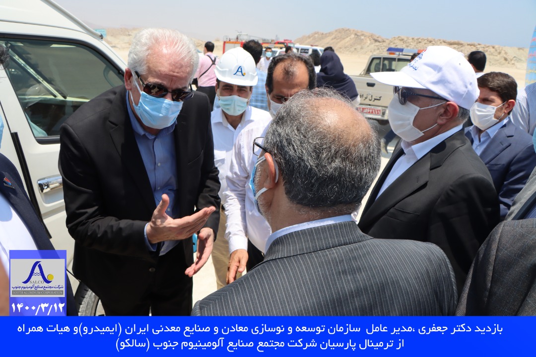 بازدید مدیرعامل سازمان توسعه و نوسازی معادن و صنایع معدنی ایران (ایمیدرو) و هیات همراه از ترمینال پارسیان مجتمع صنایع آلومینیوم جنوب (سالکو)