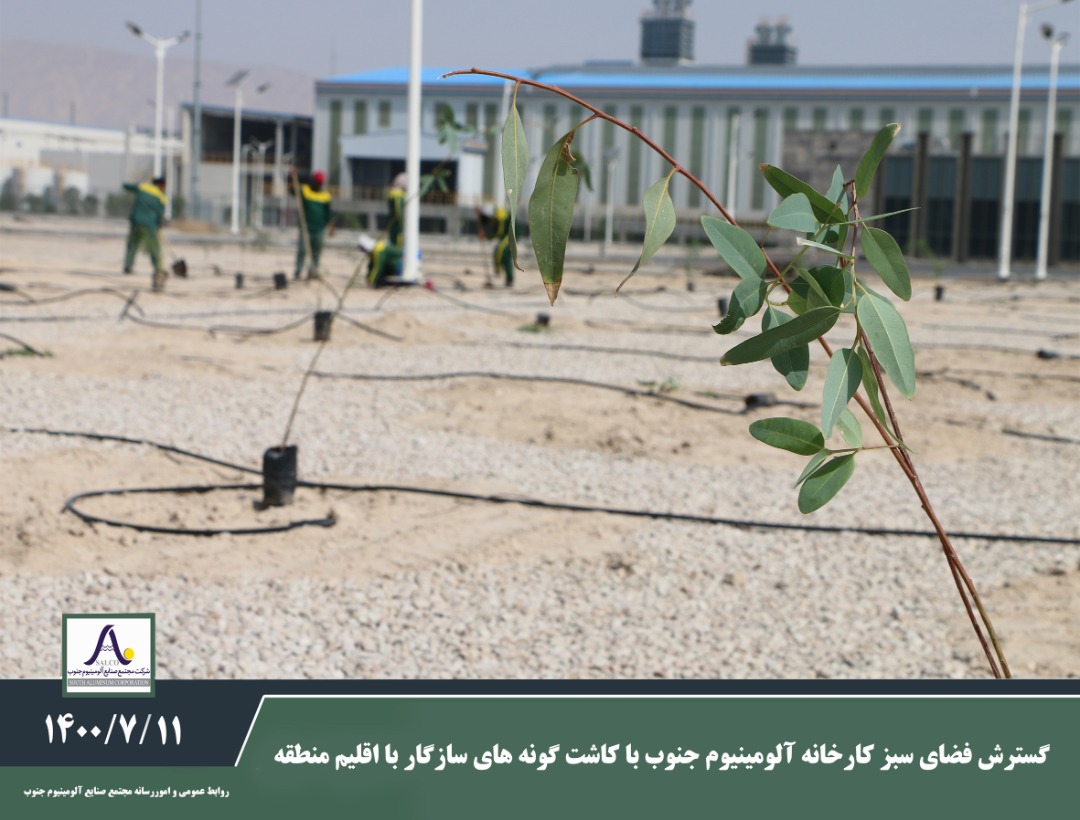 گسترش فضای سبز مجتمع صنایع آلومینیوم جنوب با کاشت گونه های سازگار با اقلیم منطقه