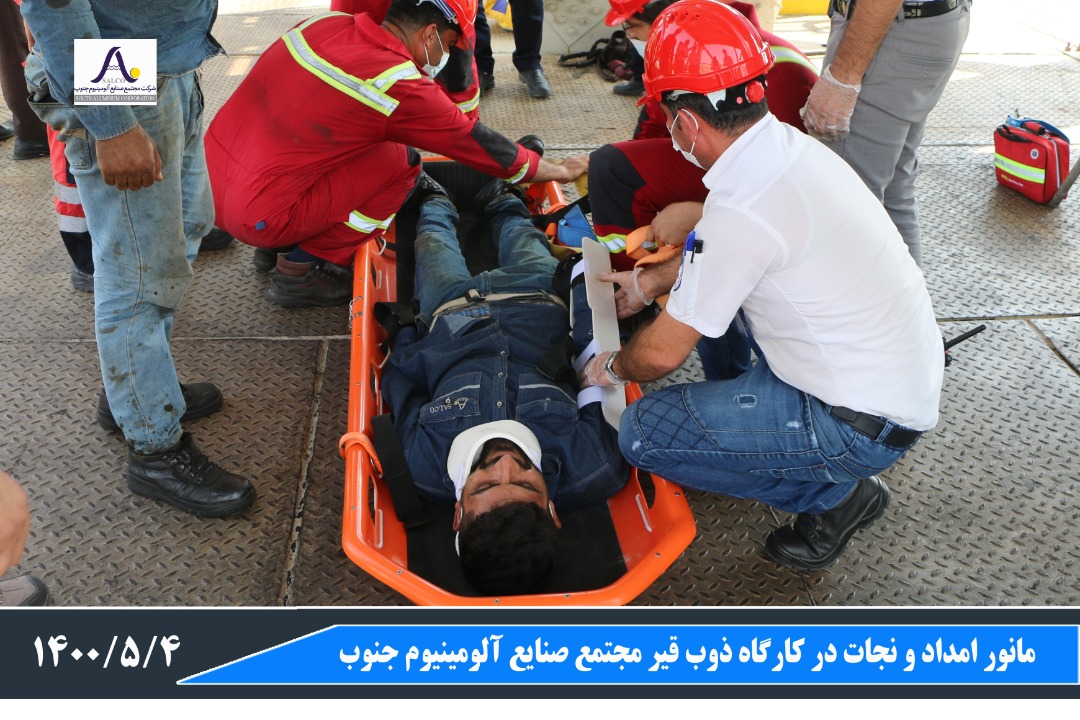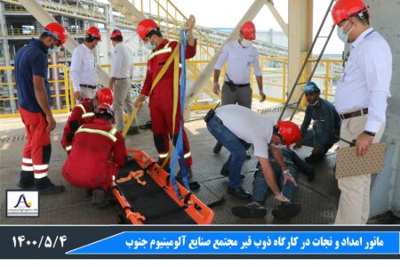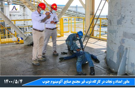 مانور امداد و نجات در کارگاه ذوب قیر مجتمع صنایع آلومینیوم جنوب