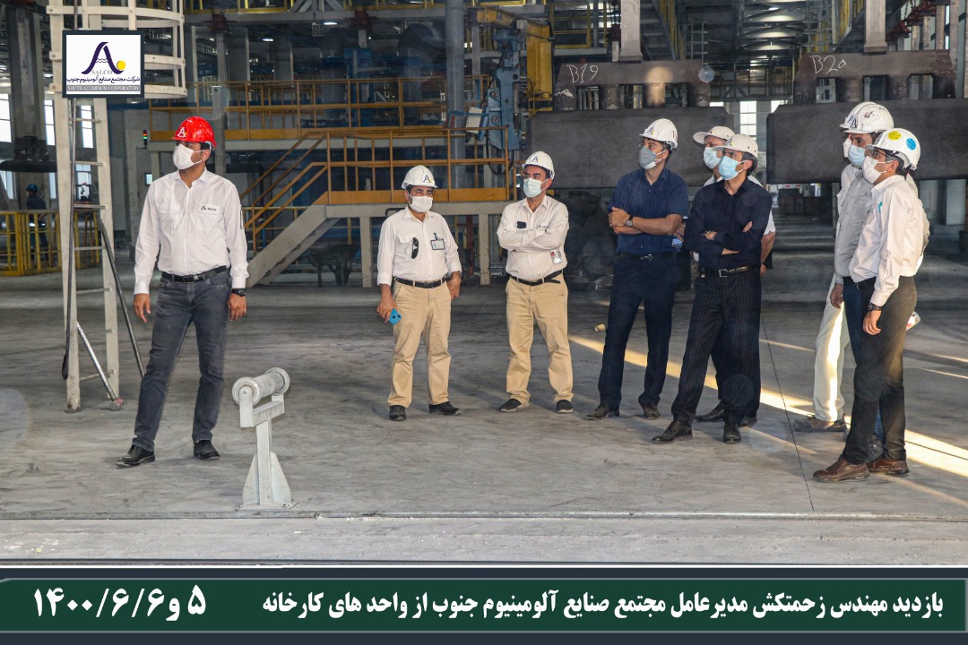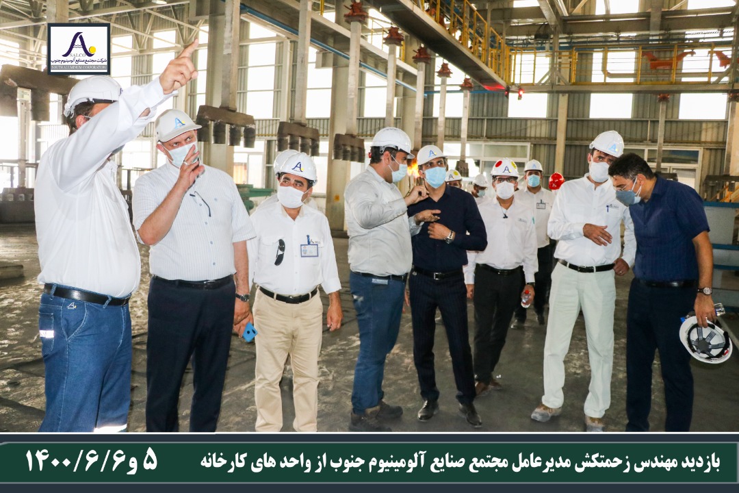 بازدید مهندس زحمتکش مدیرعامل مجتمع صنایع آلومینیوم جنوب از واحدهای مختلف مجتمع